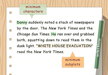 Keep subplots and minor characters to a minimum. Having too many subplots and minor characters can cause you to lose focus when you are writing a novella. They can also make the novella too long and wordy. Try to stick to a maximum of one subplot and one to two minor characters in the novella. For example, in the novella Beside the Sea by Veronique Olmi, there are only three characters total in the story, a mother and her two children.