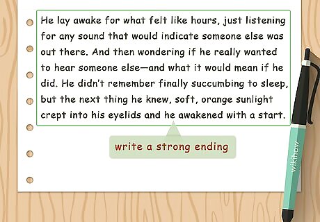Wrap up the novella with a strong ending. A good novella will have an ending that is surprising, engaging, and powerful. Build up to an ending that will leave the reader surprised, but also satisfied. For example, in Olmi’s Beside the Sea, the ending focuses on the mother character’s spiral into madness, and the effect it has on her children.
