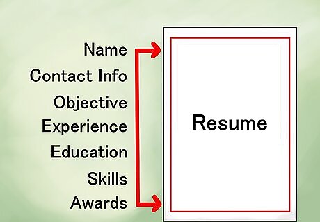 Rearrange information in your resume to highlight those skills and experiences that can increase your chances of employment. Keep in mind that the usual order is: Name, Contact Information, Objective, Work Experience, Education, Skills, Awards/Honors/Affiliations.