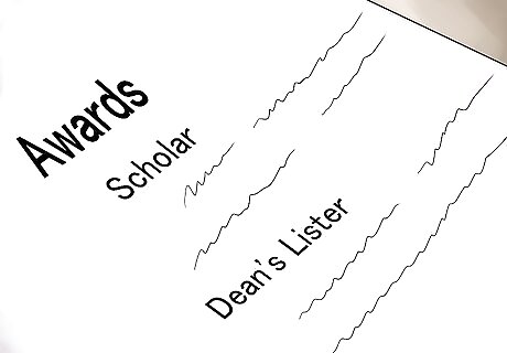 List your Awards, Honors or Professional Affiliations. This is where you should showcase any scholarships or grants you might have received, competitions you have won or whether you're a member of a society whose focus matches that of the position you are applying for.