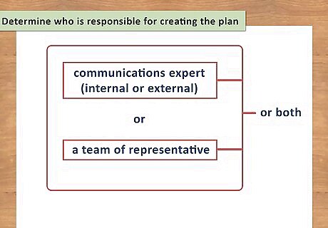 Determine who is responsible for creating the plan. Figure out first who is in charge of initiating and then finally approving the plan. Any actions taken to create a communication plan will have to be preceded by that person or group's approval. Then, figure out who will write the plan. This is often a communications expert (either from the company or external) or a team of representative from various departments. However, it can also be a combination of the two. Teaming up in this way will allow the different departments to be involved from the start, while still allowing the expert to do their work.