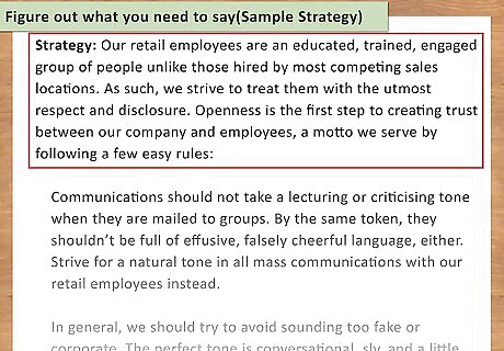 Figure out what you need to say. Internal communications should be a team effort. Communications staff should play a role in writing the message, even if it is just proofreading, editing, and offering suggestions for word choices. Take the time to work through several drafts, continually improving the choice of words. Make sure you give the "why" of the communication, not just the "what." In other words, do not simply give directives. Explain the reasoning behind those directives.