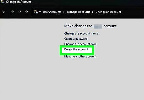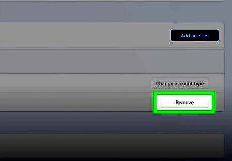 Log in with a local administrator account. You might not be able to remove an account if you don’t have administrator privileges. It can also help to create an alternative local account before you attempt this process (although theoretically, you should be able to create a local account when you sign out of your Microsoft account). To make a new local admin account if you don’t already have one: Go to Start > Settings > Accounts. Click Other users or Family and other users. Click Add account under the Other users header. Select I don’t have this person’s sign-in information in the window that pops up. Click Add a user without a Microsoft account. Fill in a username, password, and any other required information, then click Next. Click on the new account in the list under Other users, then select Change account type next to the Account options header. Use the drop-down menu to select Administrator, then click OK. Log in with your new account and follow the steps described above to remove your Microsoft account or disconnect a work or school account.