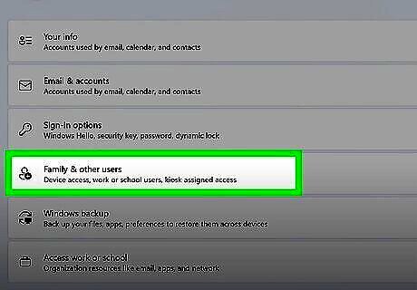 Click Other Users. This option might be called Family and other users instead. You might need to scroll down a little in the Accounts menu to find it.