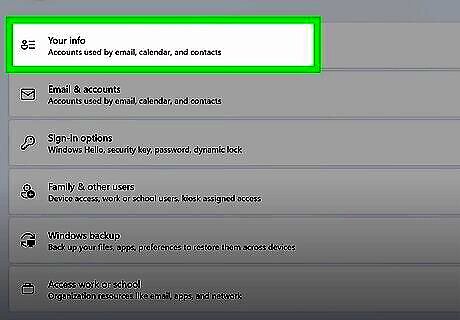 Select Your info. This is in the Account settings section. You may need to scroll down to find it.