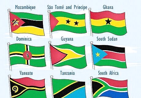 Countries like Mozambique and Ghana have green-yellow-black flags with additional colors. While Jamaica is the only recognized country with a green-yellow-black color scheme, some other countries incorporate these colors, along with additional colors, in their design. Here’s a list of countries that include green, yellow, and black in their national flags: ????????Mozambique: This flag has three horizontal stripes in green, black, and yellow with thin white stripes between each one. On the left side, there’s a red triangle containing an emblem with a yellow star, an AK-47, a hoe, and an open book. ????????São Tomé and Príncipe: This flag has two horizontal bands of green with a yellow stripe in between. There are two black stars within the yellow stripe, and a red isosceles triangle on the left side of the design. ????????Ghana: This flag has three horizontal stripes in red, yellow, and green. There’s a large black star in the center of the flag (within the yellow stripe). ????????Dominica: This flag has a green background with a yellow, black, and white triple-colored cross. In the center of the cross and flag, there’s a red circle with a purple Sisserou parrot inside it. Ten green stars encircle the central red disc. ????????Guyana: This flag has a green background with two overlapping triangles starting on the left side and pointing toward the right side of the flag. The largest triangle is yellow with a white border, and the smaller one is red with a black border. ????????South Sudan: This flag has a horizontal tricolor design with stripes of black, red, and green separated by thin white stripes. There’s a blue triangle on the left side of the flag with a yellow star within it. ????????Vanuatu: This flag has two horizontal stripes of red (on the top) and green (on the bottom), and a black triangle on the leftmost side. The stripes and the triangle are all separated by a horizontal and yellow Y-shaped line. Inside the triangle, there’s a yellow boar’s tusk and two fronds of the namele fern. ????????Tanzania: This flag has a diagonal black stripe running from the top-right to the bottom-left corner. The top section of the flag is green and the bottom section is blue. Two thin yellow lines border the diagonal black stripe. ????????South Africa: This flag has a horizontal “Y” shape that’s green with white and yellow borders. The leftmost field formed by the “Y” is black, while the top and bottom sections are red and blue, respectively. ????????Guinea-Bissau: This flag has a vertical red band on the left side with a black star in its center. On the right side of the flag, there are two horizontal bands of yellow (top) and green (bottom). ????????Zimbabwe: This flag has seven horizontal stripes—from top to bottom, they are green, yellow, red, black, red, yellow, and green. There’s a white triangle with a black border on the left side of the flag. In the center of the triangle, there’s a red star overlaid by an emblem of the Zimbabwe Bird. ????????Saint Kitts and Nevis: This flag has a diagonal black strip from the top-right to the bottom-left corner. This stripe is bordered with thin yellow lines and contains two white stars within it. The top field is green and the bottom field is red.