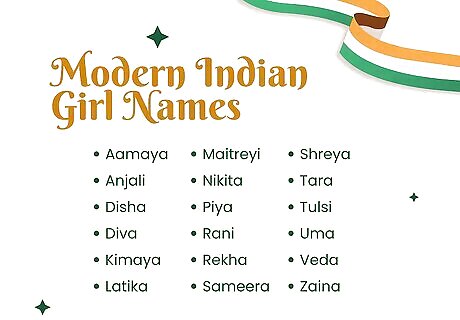 Contemporary Indian girl names often draw inspiration from music, nature, and admirable virtues. Many of these names have been around for years, but they’re still commonly used today and have a modern vibe. Here are some examples: Aamaya (meaning “night rain, boundless”) Anika (meaning “grace, brilliance”) Anjali (meaning “divine offering, salutation”) Arushi (meaning “first ray of sun, reddish like the dawn”) Disha (meaning “direction, path”) Diva (meaning “daytime, divine light”) Kimaya (meaning “divine, magical”) Latika (meaning “elegance, grace”) Maitreyi (meaning “friendly one, friend”) Nikita (meaning “house, habitation”) Piya (meaning “beloved, dear one”) Rani (meaning “queen”) Rekha (meaning “line”) Sameera (meaning “breeze”) Shreya (meaning “auspicious, superior, blessed”) Tara (meaning “star”) Tulsi (meaning “holy basil, sacred plant”) Uma (meaning “flax, splendor”) Veda (meaning “sacred knowledge, divine wisdom”) Zaina (meaning “beautiful, grace”)
