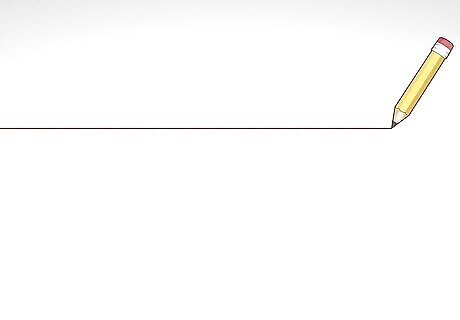 Draw your horizon line. In this tutorial, we’ll show you how to draw a simple box using three-point perspective—but once you know how to set up your horizon line and vanishing points, you can draw anything you want! To start, draw a flat horizontal line across your paper, somewhere on the upper portion of the space. This is your horizon line: the visual boundary representing eye-level, or where land and sky meet. For this tutorial, we’re starting near the top of the paper in order to place the box below the horizon line. If you want to draw an object above the horizon line, you’ll need to draw your horizon near the bottom portion of the paper instead.