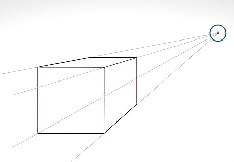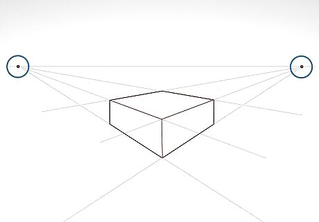 Make the top of your box by drawing two more lines. These final lines should originate from the vanishing points on your horizon line. Draw one line from the left vanishing point that extends beyond the tips of the lines coming from your bottom vanishing point. Then, draw another line from the right vanishing point that does the same thing. This will form the top right, top left, and top center corners of the box.